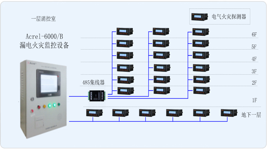本項目地上六層,地下一層。現需對整個紅星美凱龍家居生活廣場重要用電回路進行監控。安科瑞電氣股份有限公司為本項目設計一套Acrel-6000/B漏電火災監控系統,并在重要進線回路安裝電氣火災探測器ARCM200,由此來實時監測變電所內重要回路的漏電流,以確保變電所配電系統的電氣安全。